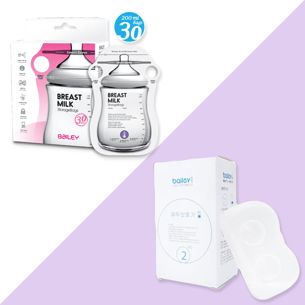 韓國BAILEY母乳儲存袋 指孔型 200ml 30入+BAILEY貝睿乳頭保護罩