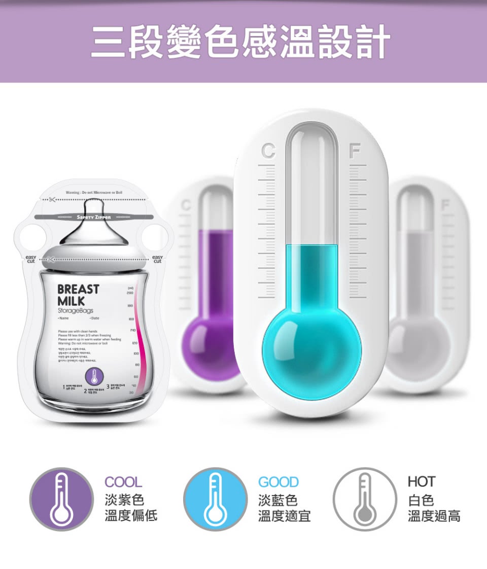 ◆三段變色感溫設計,輕鬆辨識母乳溫度