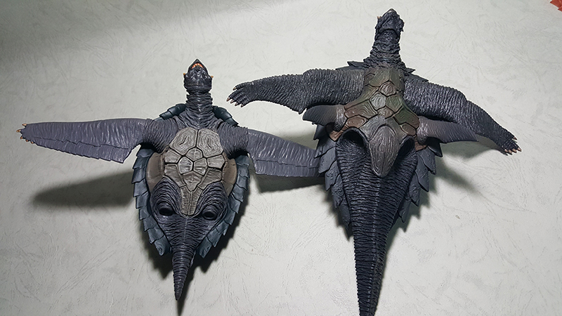 從飛行型態來看 卡美拉1999似乎比較大隻,但實際設定上並不像哥吉拉那樣大小差異明顯