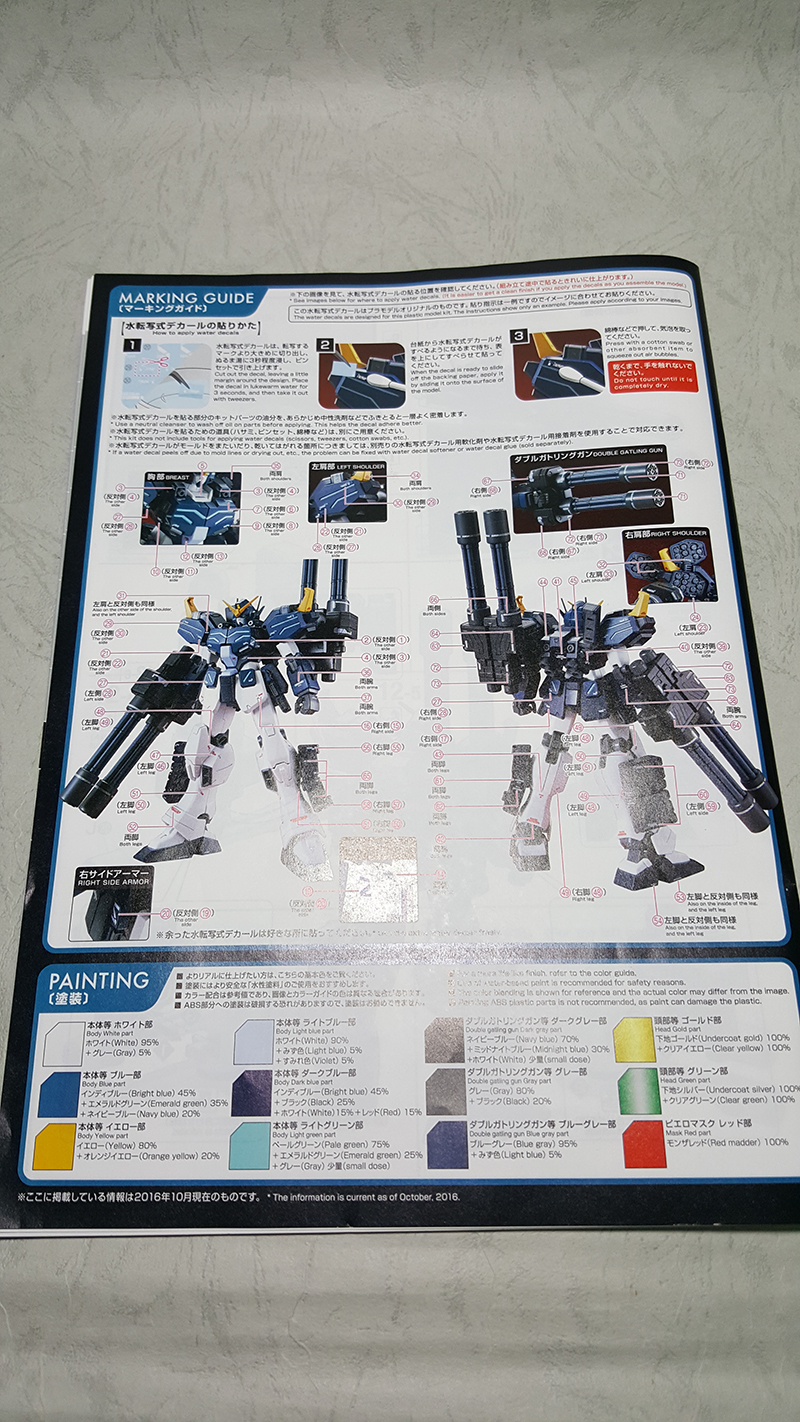 說明書背面,可以看到配色表以及水貼位置說明