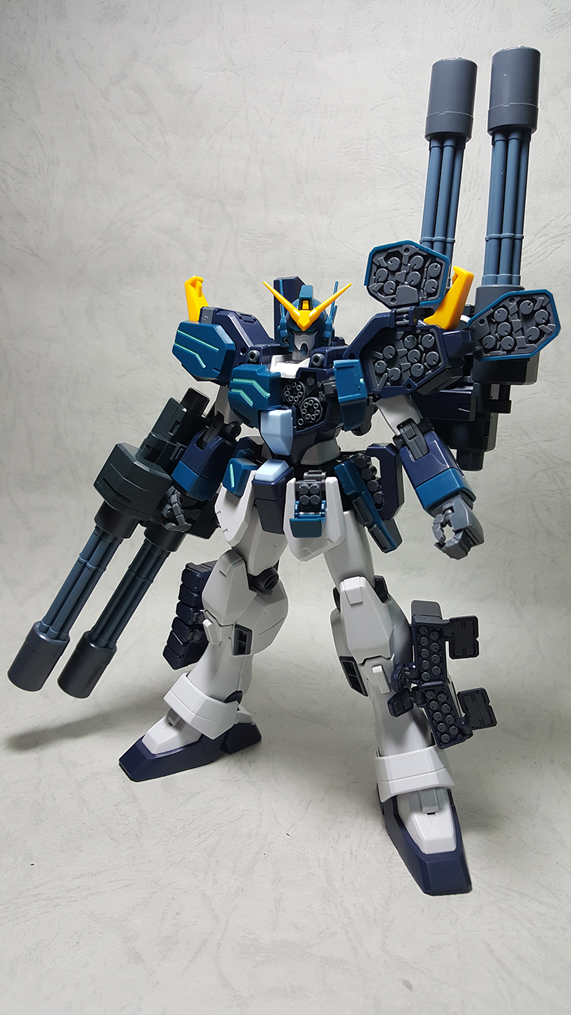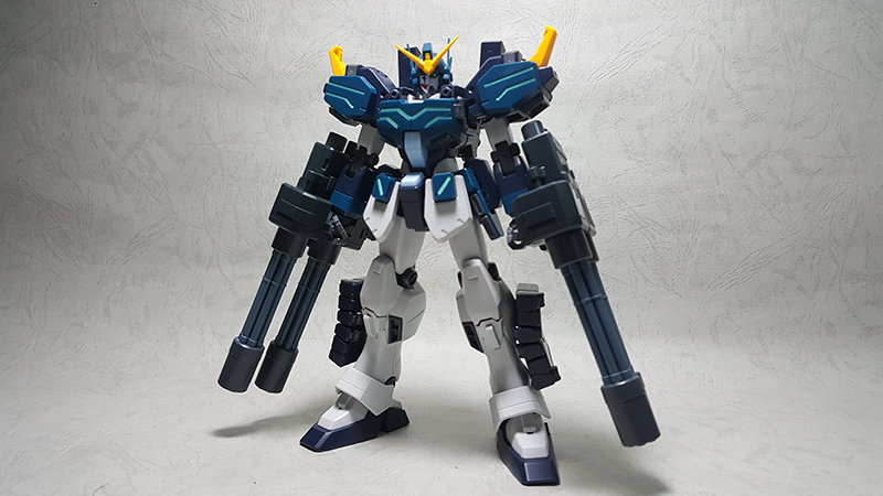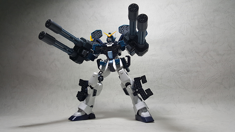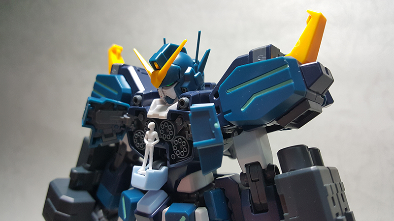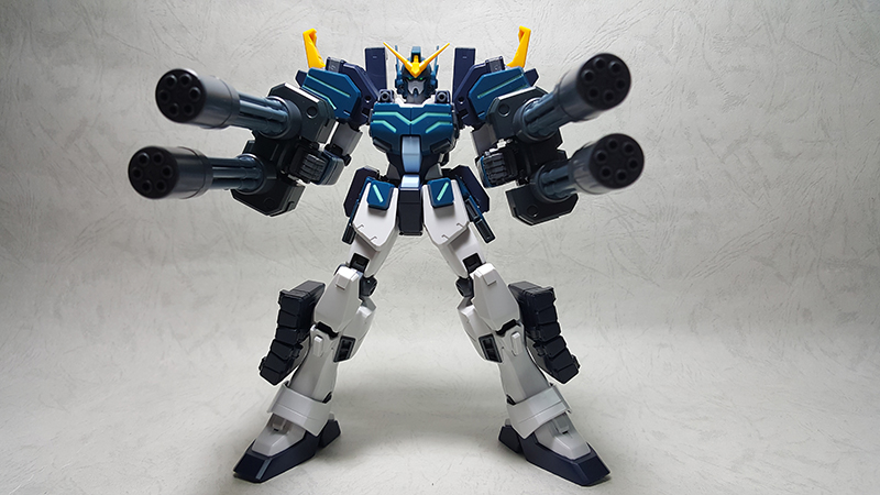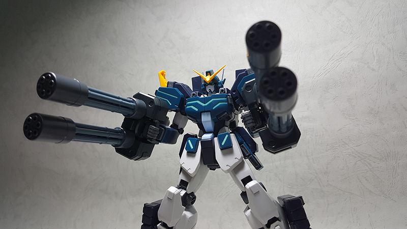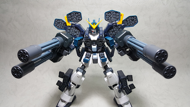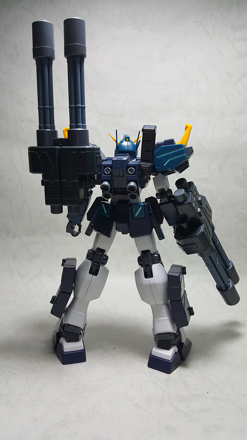 模型背面,可以看到噴射背包掛載雙管蓋特林機砲