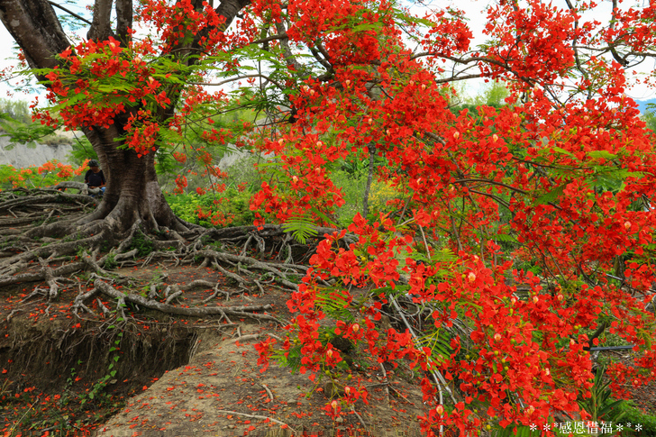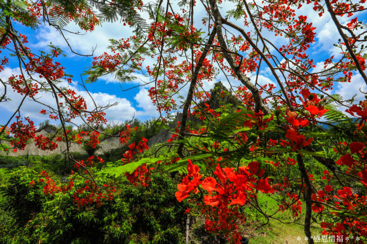 以上拍攝日期是107、5、14目前是十成全開,約二週後將會紅毯鋪地,把南台灣的熱情燃燒熾盛,進而延續到中部以北,逐步染紅全台,鮮豔奪目、熱鬧強強滾,新的追花狂潮紛至沓來,指日可待,幸福指數也逐日爆表啦!