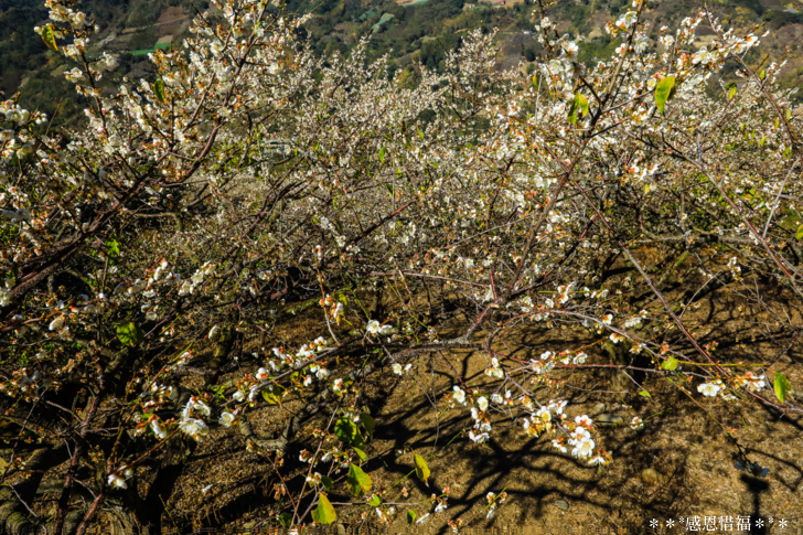 今年暖冬氣候變化,太半梅花開得稀稀落落,惟獨高海拔的信義鄉外坪頂不受影響,目前(1月10日參觀)大爆發,白茫茫一片,吸引許許多多遊客絡繹不絕於途,儘量利用非假日參訪,避免塞車之苦,玩興盡失。