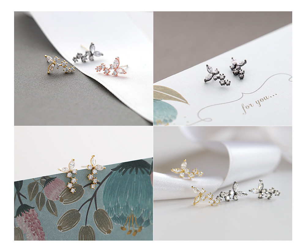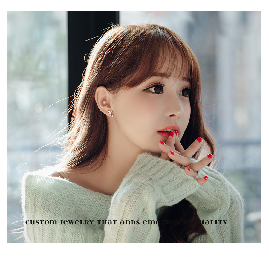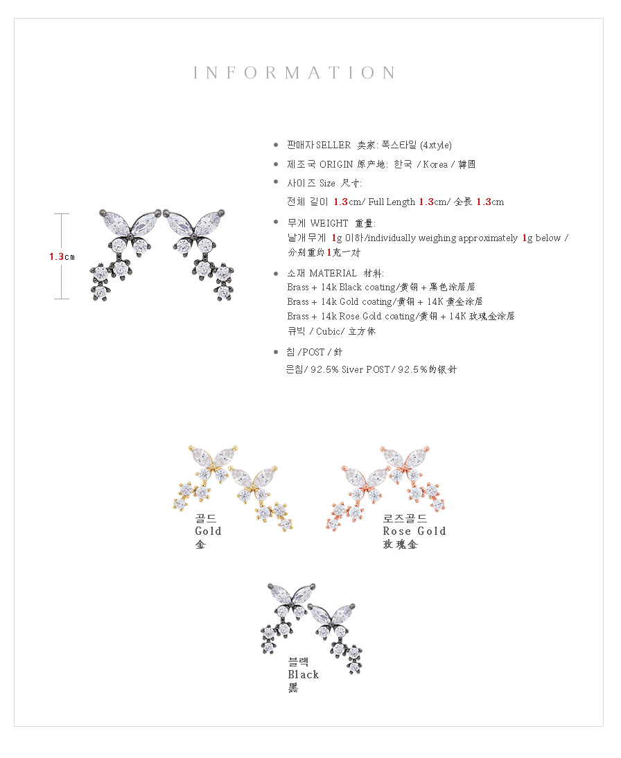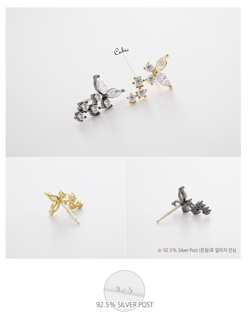 미니멀한 나비를 모티브로 디자인된 큐트함이 물씬 느껴지는 ★은침★ 나비앙 큐빅 귀걸이 입니다.