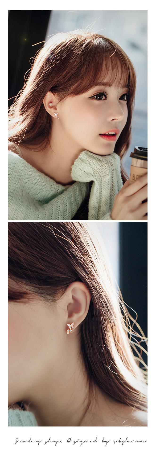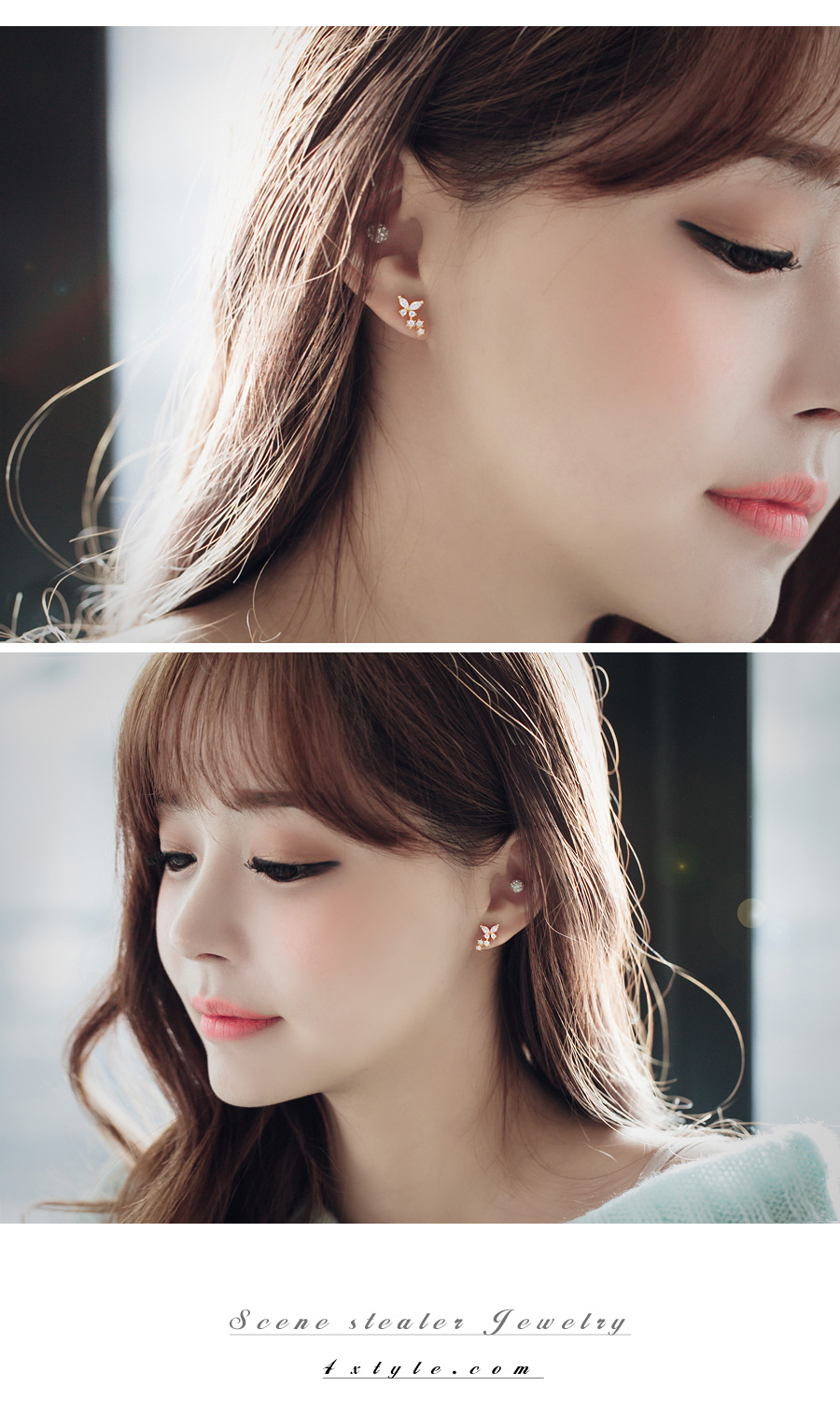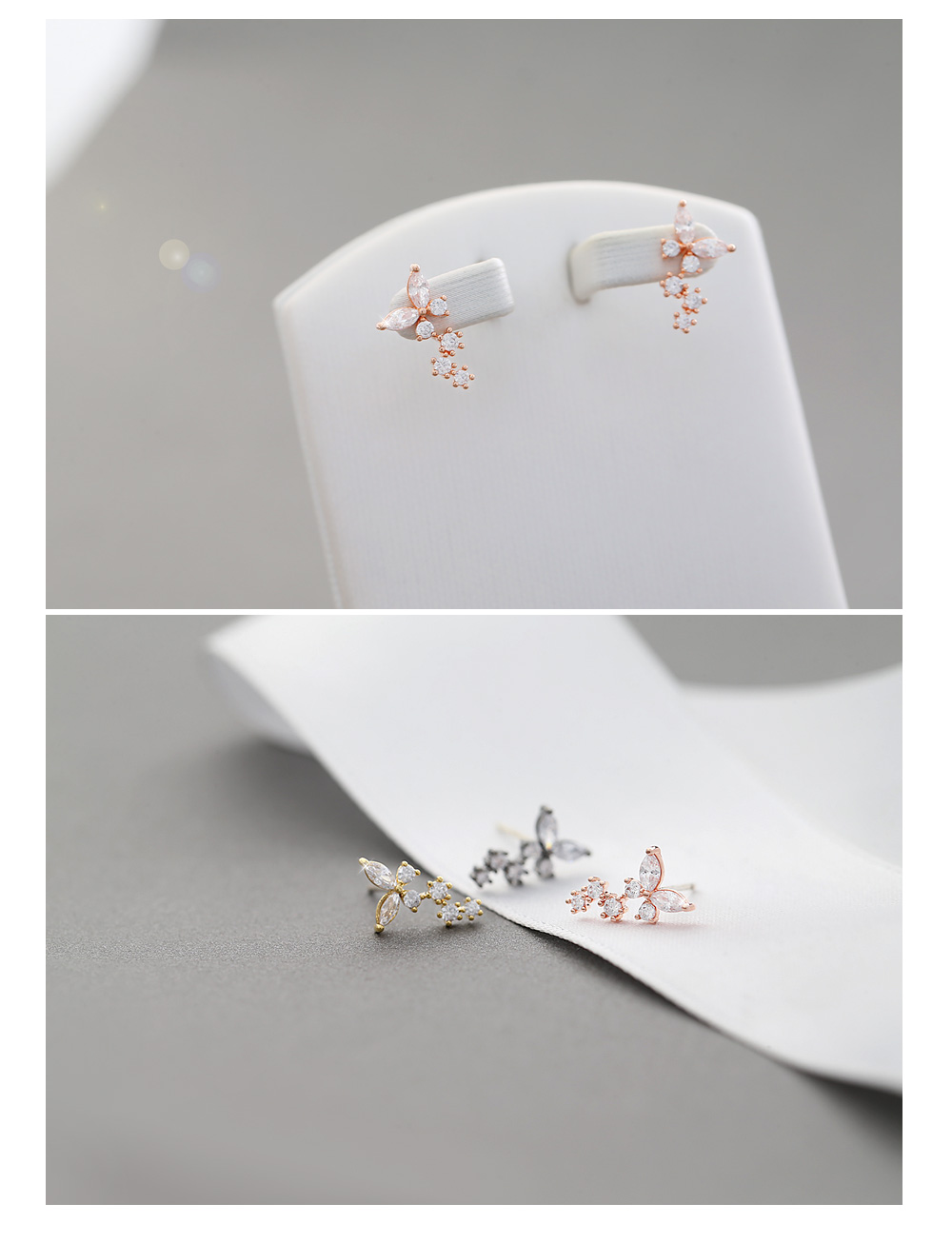 미니멀한 나비를 모티브로 디자인된 큐트함이 물씬 느껴지는 ★은침★ 나비앙 큐빅 귀걸이 입니다.