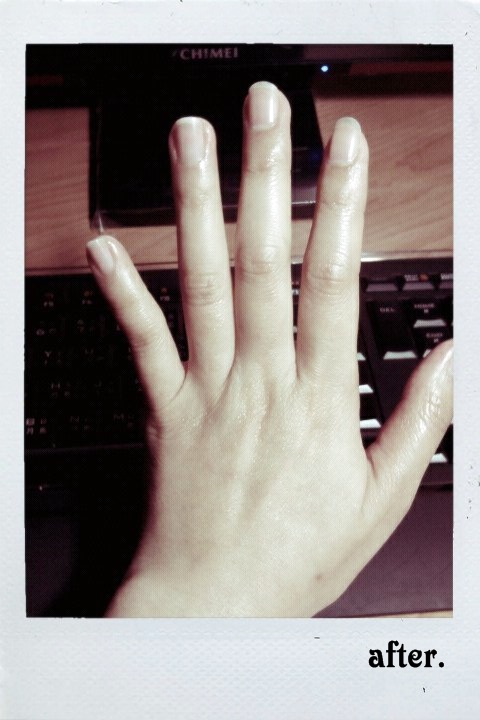 7.時間到,取下手套,用拋光棒將甲面拋光即可