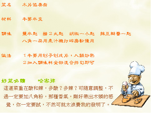 為了向我摯愛的三義致敬,抓破頭殼終於研發出這道人人稱讚的絕妙美食,您不會以為我真的拿木片來做菜吧?呵呵呵......