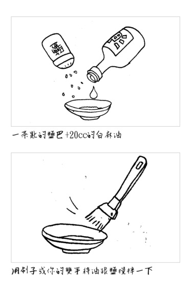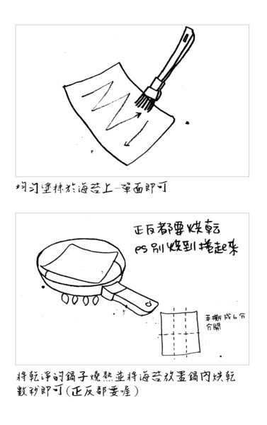 以下四個步驟,提供家常鹽麻海苔手製作法