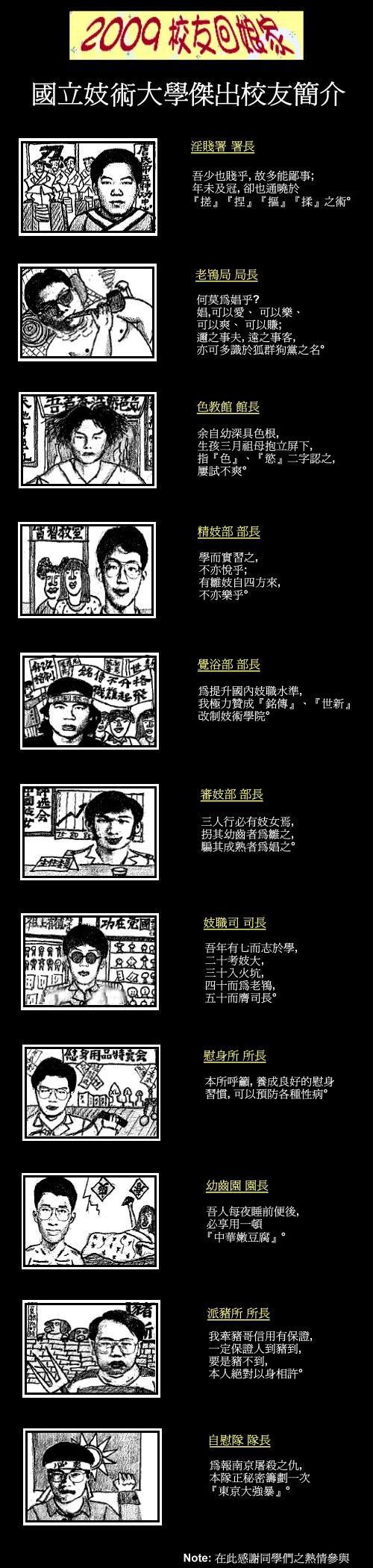 感謝思敏再次的回應, 對妳的讚許, 實在愧不敢當, 這些人物樣貌, 都是大頭照影印後描繪的, 最後再加以掃描, 就可以給它貼上來了, 偶沒有妳想像的那樣天才的啦!