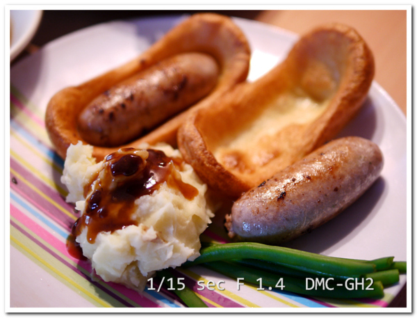 特別是,搭配sausages的Yorkshire Pudding是長的,搭配烤肉吃的Yorkshire Pudding是圓的,厲害的餐廳可以自己做Yorkshire Pudding,我們在家附近的英式小館 white lion吃過他們自製的十公分直徑大的Yorkshire Pudding,烤好的sausages、馬鈴薯泥全放在裡面,好像一個大臉盆。如果想自己做,可以參考BBC的食譜。http://www.bbcgoodfood.com/recipes/9020/best-yorkshire-puddings