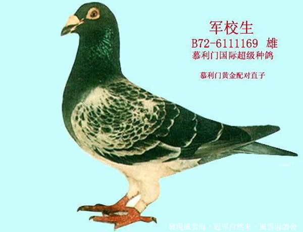 “軍校生”1歲齡時即獲6次冠軍,後代世界各地冠軍無數!幕利門在世界鴿壇最廣為人知的世界名鴿!幕利門52萬比利時法郎購回,其中威廉吉爾特鴿系的整個家族,都貫穿軍校生的血統。它在1986年被竊,威廉·吉爾特在1980年購得1羽“軍校生”號所出的灰雌鴿,它的2羽後裔成為奧運選手鴿。