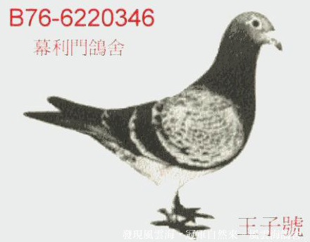 白鼻 環號B73-6261175鉛灰色。 “戈馬力”在1980年拍賣會上以高價拍得,後在他棚裡成為他舍裡最轟動、最成功的種鴿。