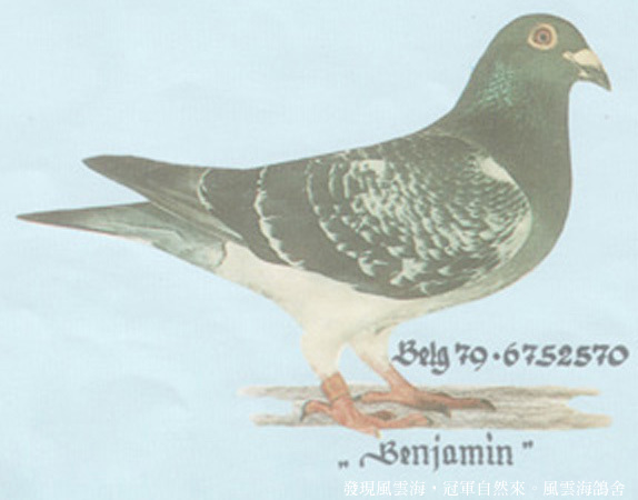 班傑明 環號B79-6752570格斑花鴿,5次冠軍,6次亞軍。