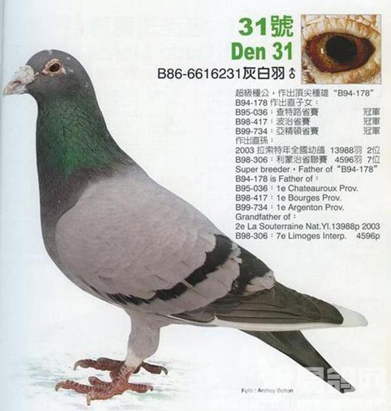「白條」的一個子代「白羽」B89-6324103贏得了1990年波治國家賽9756羽冠軍,並贏得了同年比利時中距離鴿王5位;「白條」還做出了可能是他們最好的種鴿--有名的「231」B86-6616231,「231」做出的後代成績令人驚歎,比利時目前最流行的可以說就是「231」 後代,「231」 在2002年時出了2羽信鴿後,結束了其輝煌時代。