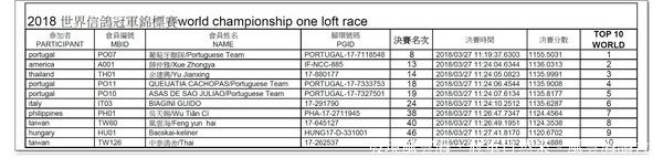 20180527 2018FCI世界信鴿冠軍錦標賽暨FCI國際公棚賽世界冠軍賽第8名成績~風雲海2017-645127灰