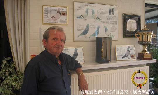 祖父鴿 : G VdAbeele直系,傳奇鴿「白腹號」(Wittenbuik)之子。這隻「Wittenbuik I 」是隻超級種鴿,其子獲得利蒙治17456羽全國14位、利蒙治15507羽全國21位….