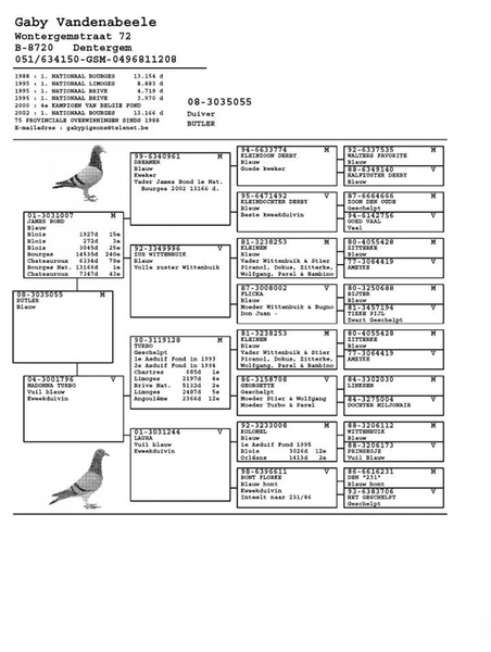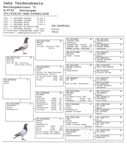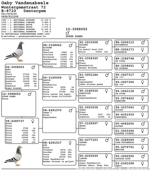 蓋比.凡德納比過去30年的成績進行準確描述並非易事。他自己已經贏得了幾乎近100次全省賽冠軍(準確地說是94次),還有6次全國賽冠軍。要知道這還不包括那些使用凡德納比鴿系的其他鴿捨取得的眾多頂級賽績。