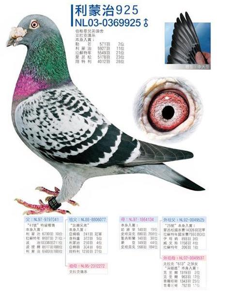「Bleekoger」,NL 98-9885826,贏得拉索特年628公里7971羽國家賽冠軍。還獲得1145羽2位以及奧爾良國家賽10796羽40位。