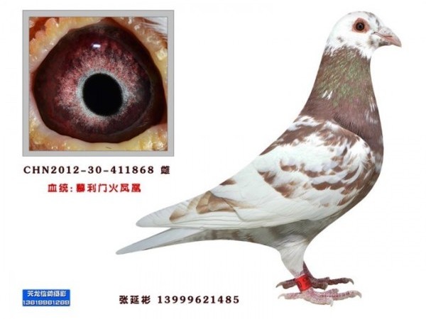 火鳳凰以紅白或火紅色居多,眼砂砂黃眼都有,以紫羅蘭色為上品。火鳳凰羽色配其它羽色出紅鴿幾率較小,異色子代近親交配可出現返祖紅色鴿。著名的幕利門火鳳凰就是巧克力色的,如果是這個血系,是好鴿子,雜交做育後代參賽。想在300至500公里的距離中有速度,配詹森類等品系比較容易出成績。詹森系與幕利門系或楊阿騰系交配易成功,可以放飛較遠的距離,第一代雜交產生的冠軍鴿,再回頭與本系交配,繁殖三四代後,可以考慮雜交。巧克力羽色的遺傳,這個問題涉及到生物遺傳學和自然科學。巧克力羽色屬於遺傳性能較強,竟翔性能較穩定的特殊一族(立足於血統過硬和品系優良)。其羽色多顯隱性遺傳之勢,故而不易得到。這種羽色,只有通過近親交配才能獲得。