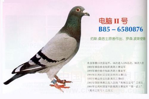 它大概有75%的血統來自於桑傑士表哥的鴿舍,另外大約有20%左右時來自於詹森的血統。