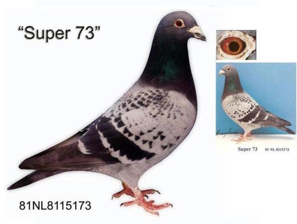 「超級73」獲得荷蘭國家鴿王冠軍和荷蘭「誰有更好」中距離鴿王亞軍之銜。他曾一年內8次奪冠。有人出高價購買這羽鴿子,彼得斯都沒有轉讓,他說他為當時的決定感到慶幸。進入種鴿棚之後,「超級73」在2年內作出了11個冠軍!後來這羽鴿子賣給了美國德克薩斯州橡樹園的主人坎貝爾·斯坦格(OAK HAVEN FARMS)先生。坎貝爾向世界各地出售了很多這羽鴿子的子代,這些鴿子飛出了非常好的成績,從而也使「超級73」享譽世界,蓋斯彼得斯和坎貝爾也成了好朋友,所以在蓋斯的心中,「超級73」不僅是一羽轉讓出去的種鴿,而且也是他和坎貝爾先生之間的友誼之線!