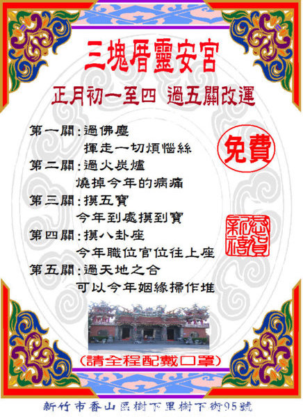 20220124新竹市三塊厝靈安宮111年2月1日壬寅年農曆1月1日至1月4日舉辦鑽神殿祈福會訊息