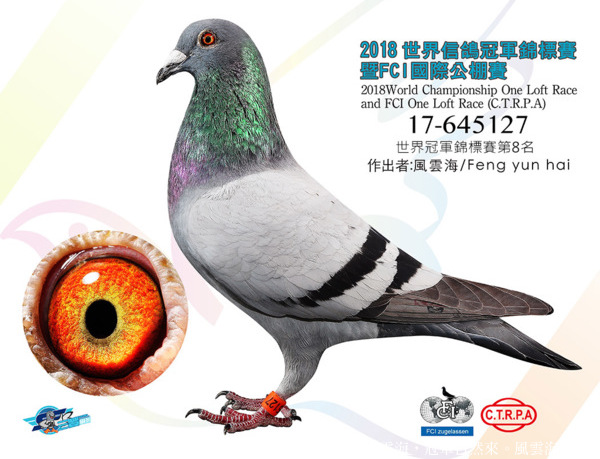 直孫2017-645127參賽2018FCI世界信鴿冠軍錦標賽第8名。