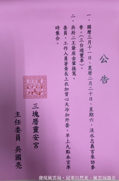 以上轉載至三塊厝靈安宮公告訊息若有侵權請告知,立即刪除處理。