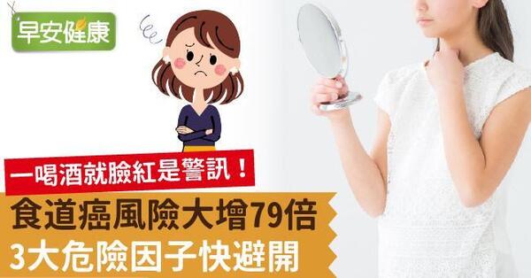 根據統計,台灣人有40%缺乏代謝乙醛的aldh2酵素,當這些人喝下大量的酒精,卻缺乏能代謝乙醛的「aldh2」,這些乙醛只能堆積在身體裡。長期飲酒會讓體內堆積過多乙醛、罹患食道癌的機率上升,最簡單的方法就是看喝酒之後臉紅不紅,「紅臉族」代表身體裡缺乏aldh2酵素,如果平常又有抽菸、喝酒、嚼檳榔的不良習慣,就是罹患食道癌的高危險群。