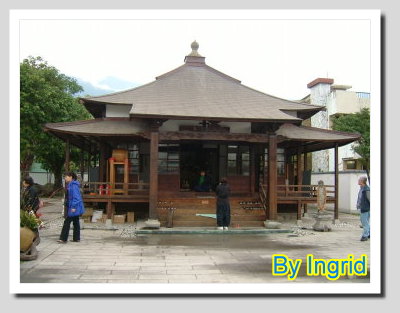 之後,朋友又開車帶我們走訪郊區一處古蹟-「慶修院」,這是一處日據時期日本人所建的廟宇。木建的屋宇,是供奉神明的殿堂,整理得乾淨明朗的庭園有著濃濃的和風,走在白色的圍牆裡不算寬闊的慶修院,空間彷彿來到日本的寺院,靜靜地感受日本的文化氛圍,又是另一種不同的體驗。