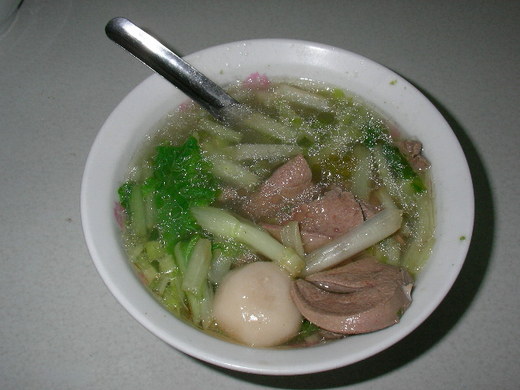 這家店吃的是古早味,本來只是小攤販,發展到一家小店面;又因為鹹湯圓和豬肝湯都好吃,發展成合而為一的豬肝鹹湯圓。豬肝煮的恰到好處--好吃;鹹湯圓則是比一般的鹹湯圓小一些,豬肉內餡顯得較一般的多一些,不過口味普通,沒有太特別。
