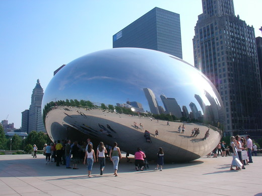 來到芝加哥,很多人第一個造訪的就是Millennium Par千禧公園 (www.millenniumpark.org),其中不能錯過的就是 Cloud Gate(當地人都叫他The Bean),The Bean真的是一項令人讚嘆的公共藝術,看不出接縫的不鏽鋼組成的一顆大豌豆造型,在白天他就像一面大鏡子,將芝加哥建築反射在其中讓大家欣賞。而千禧公園也提供了芝加哥市民一個很好的遊憩場所,有景觀、有休憩的地方、還有我第一天晚上就造訪的The Crown Fountain讓人夏日玩水,我覺得它的存在豐富了芝加哥的市容。