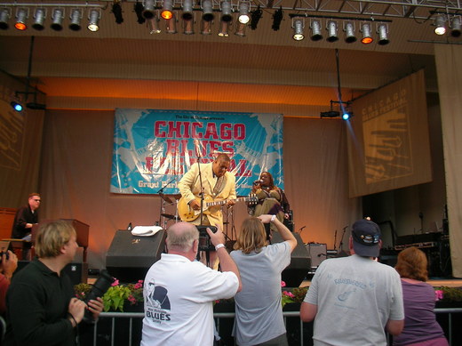 6月中剛好有Chicago Blues festival,一連三天將公園改成大型舞台,每晚都有免費的藍調音樂可以自由入場欣賞,請到的歌手都頗負盛名的樣子,我們就連聽了三天,只是芝加哥早晚氣候差異頗大,晚上只有十度上下氣溫,這次旅遊我就沒帶太厚的外套,實在是給他冷的受不了,沒法聽太久就落跑啦。