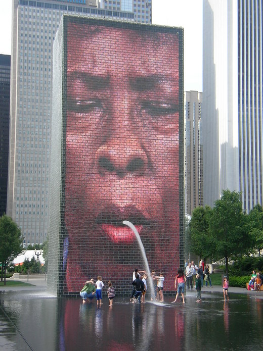 第一天晚上就去The Crown Fountain參觀過,當然白天要再來看一下這個好玩的城市噴泉,很多親子在當中遊玩,愈熱這裡一定愈熱鬧!