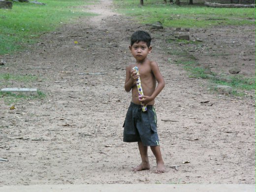 三個一塊!三個一塊! 這個黝黑,眼神膽怯,一直和我保持一公尺安全距離的孩子,拋開他那群同夥娃娃兵團,孤軍深入追擊我兩百公尺,口中不斷報價,只為了要我付出一塊美金買下他手中的棕梠糖。多可愛的小棉共,屢敗屢戰,竟不知他手中始終只拿著一根棕糖,連基本存貨都沒,卻想賣我三個。看來他連基本算數都不懂 ! 有什麼關係呢 ? 最後成交價是 : 一塊美金,一根棕糖 ! 我覺得自己是和王永慶做生意。