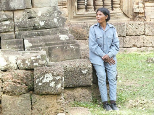 看守古蹟的阿嬤守衛,她的工作是看牢這一大片坍蹋的城堡,不能讓人搬走,髒污,移動任何一塊石頭。40度火毒的太陽下,一天曬足十小時(沒有洋傘),月工資約台幣四百元。要地陪請教她一下,可有發生過甚麼英勇護城事跡 ? 她靦腆的說 : 沒有 ! 那顆門牙是自己摔掉的。因公負傷~也算有貢獻了! 可愛的門神。