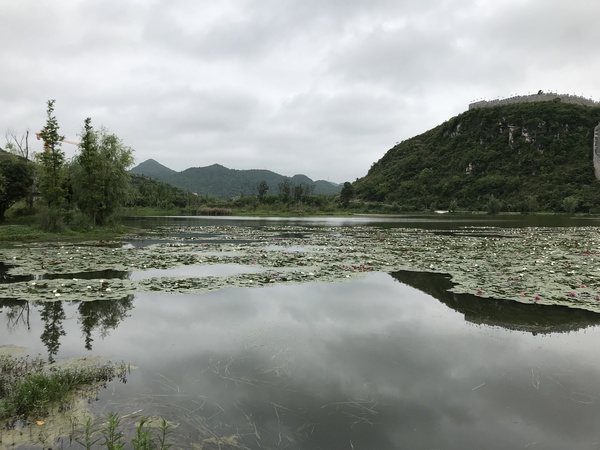 有一座長長的古代烽火台城牆, 可以在城牆上俯瞰全貌。