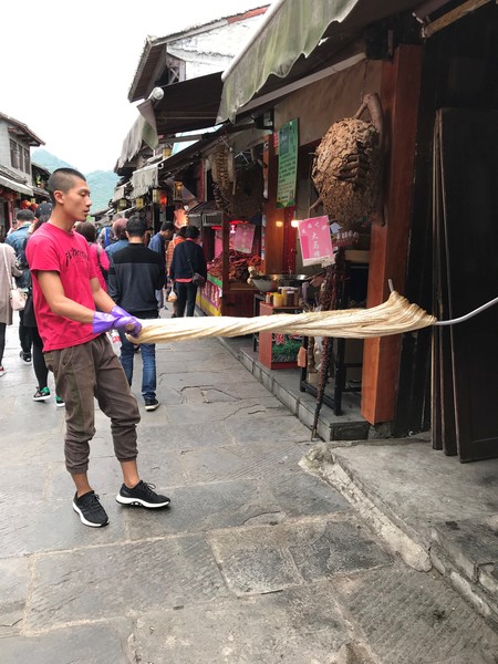 正街上和交錯的巷弄中,商店櫛比鱗次。五花八門的商品讓人目不暇給。各式風味美食如 青岩豬腳 青岩豆腐 雞辣角 玫瑰糖……看起來都不錯吃的樣子呢!