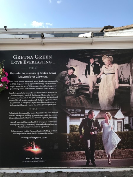 Gretna Green 原本是一個 打鐵小鎮。 18世紀時小鎮人口不多,尤其在農忙時期,鎮上只有鐵匠有空能為逃婚而來的年輕男女的證婚。