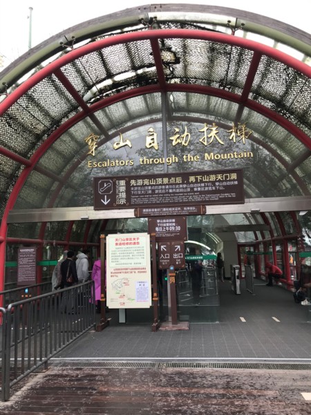 這座2015年4月25開始營運的“穿山電扶梯”是全球首條在山體隧道內安裝的電梯。總長度為897公尺,提升高度340尺。