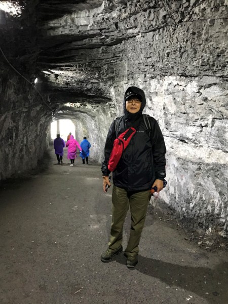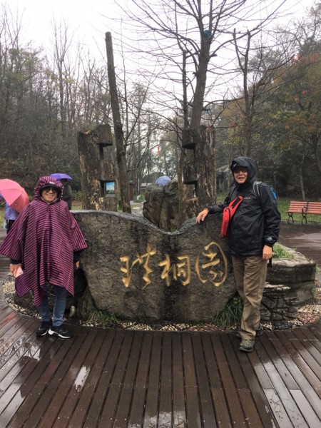 穿著雨衣,撐著雨傘,沿著棧道慢慢走。 四周絕美的景色,讓我們幾乎忘了寒冷 (此時的氣溫大約只有攝氏2,3度。)