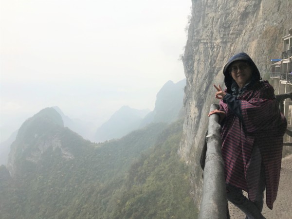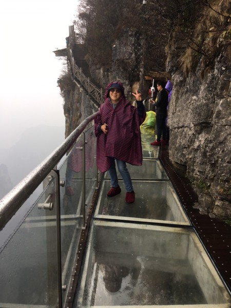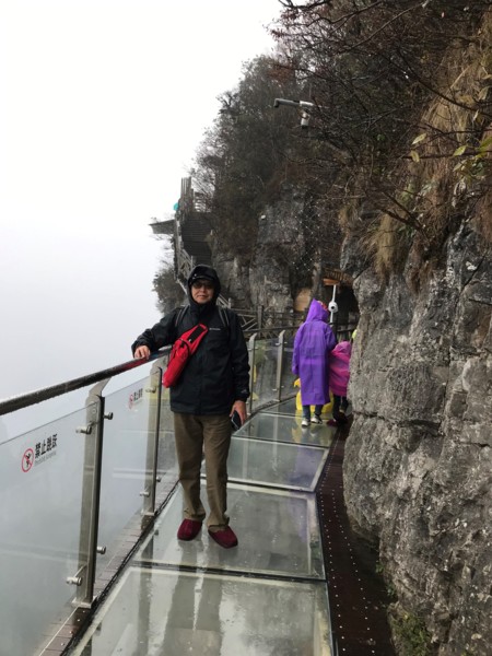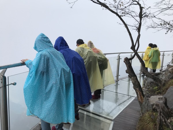 我們走玻璃棧道的時候,天候不佳,能見度較差,但也因此減少了一些恐懼感。