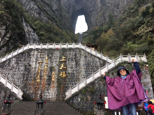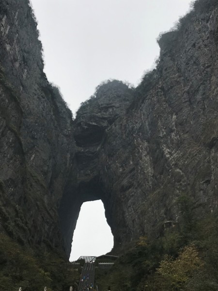 回到 天門洞廣場 時,雨停了,天也放晴了。 更令人興奮的是,天門洞 完整呈現眼前。