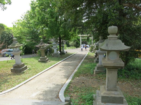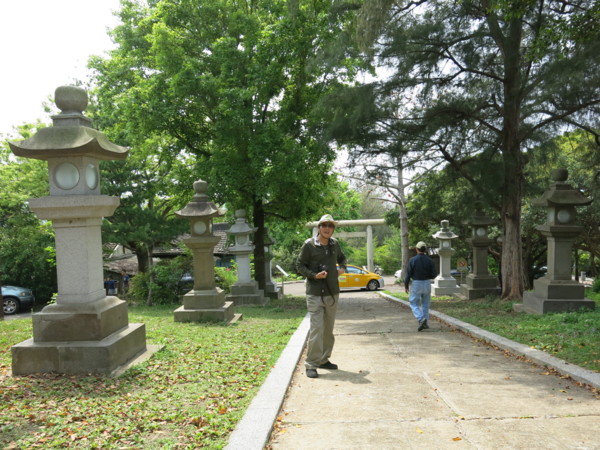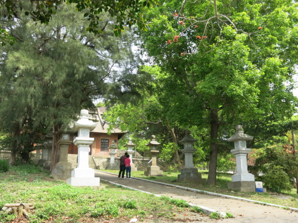 日式石燈籠,顏色新舊不一,顯然部分是當年的舊物、部分是殘存的基座加上重鑄的石燈籠