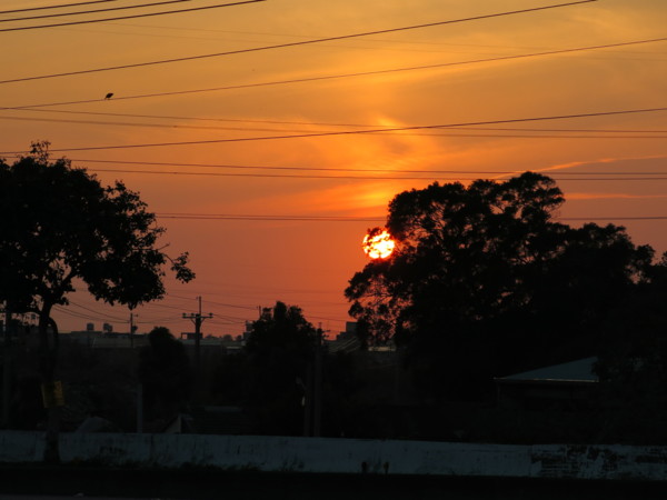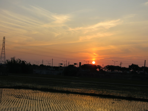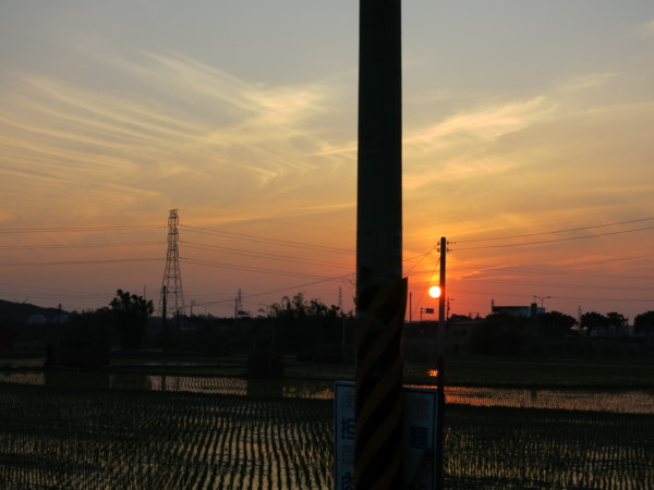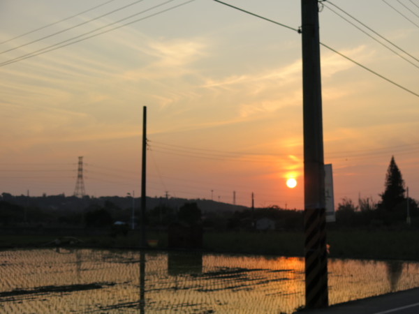 黃昏時分,我們在回家的路上,看到掛在天邊的夕陽。