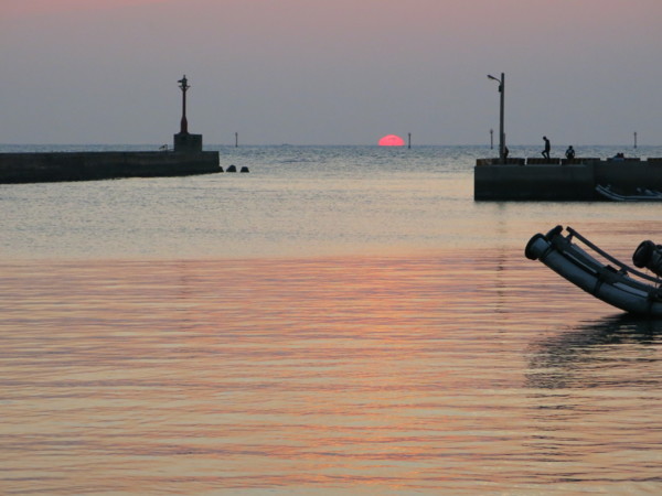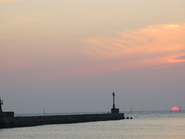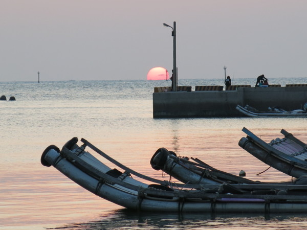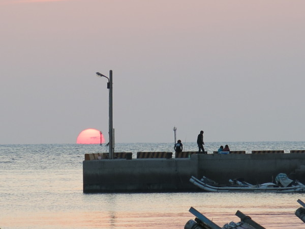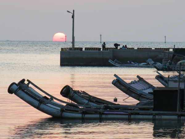啊! 有點晚了! 太陽就要沉入海裡啦!