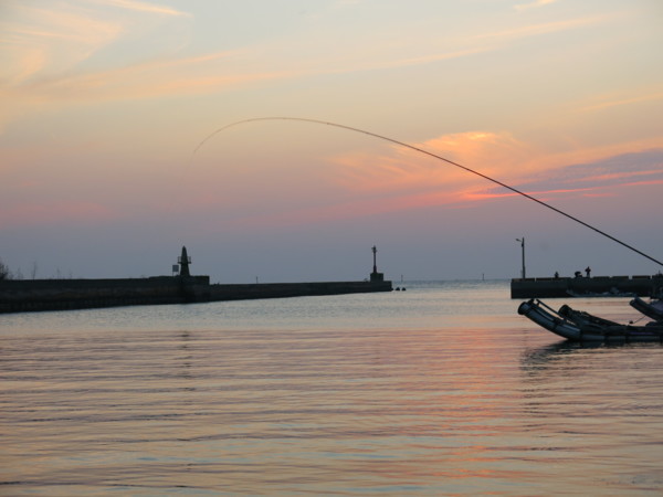 釣客依然沉默地耐心等待魚兒來吃餌。