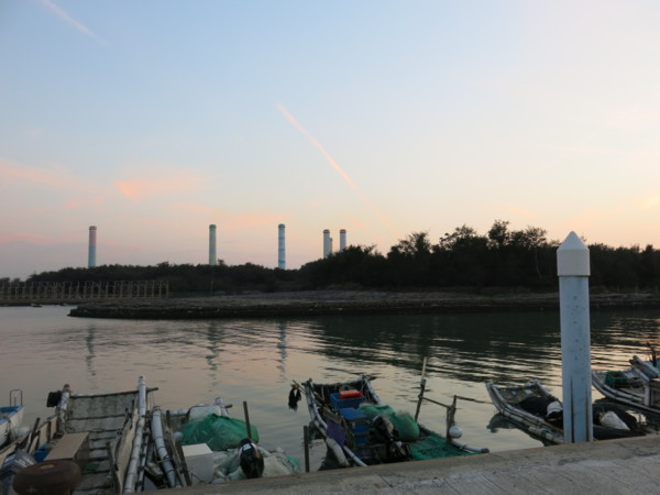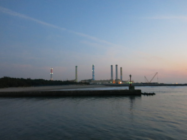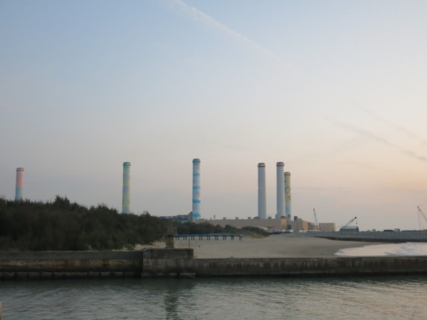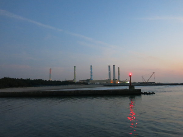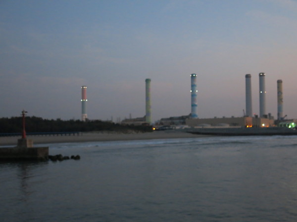火力發電廠的煙囪在暮色中看起來比白天婉約許多