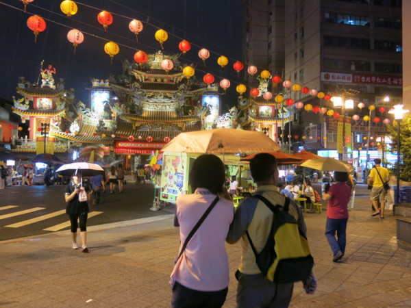今天有廟會活動,好熱鬧。 可惜被一陣雨打亂了。