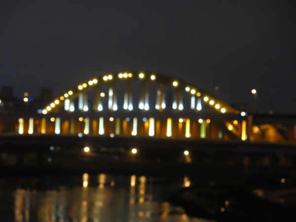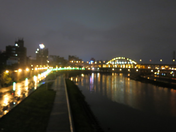 橋下兩岸的河濱公園一整排路燈倒是不斷地變幻燈光